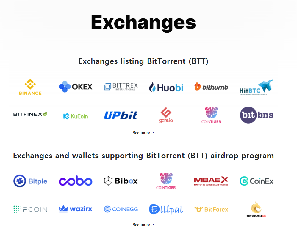 18년도에 중국대륙에 트론(TRON)에 1억 2000만 달러에 인수되었으며 트론 입장에서도 자사의 블럭체인 시스템과 BTT의 인프라를 협응시킨다면 초연결사회에 발맞추어 글로벌 P2P 네트워크 솔루션 성장 전략을 마련할 수 있을거라고 했습니다. 이미 지금까지 인정받은 존중받은 가장 큰 규모의 분산형 넷트워크 시스템인 이더리움의 경쟁상대라고 볼 수 있는 트론(TRX)의 호재및 급등 신호가 올때마다 역시나 변동폭을 그대로 가져간건 사실입니다. BTT 토큰은 TRC-10 기반이므로 코인을 통해서 가장 빠른 속도로 다운 받으 실수 있으며 트랜잭션 속도 또한 타의 추종을 불허하는 속도 인게 기존에 있던 이더리움 네트워크 보다 무려 210배나 빠른 속도라는 점입니다. 많은 양의 트래픽을 처리할 수 있는 것이 괜히 말이 나온것이 아닌것을 알 수 있는 대목입니다.