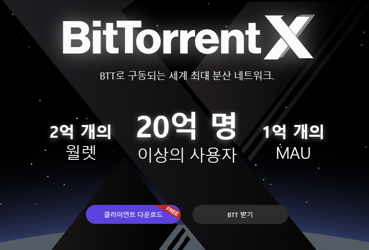 비트토렌트(BTT)는 01년 브렘 코휀이 자체 개발한 선구적인 P2P 분산 커뮤니케이션 프로토콜로 전 세계 150개국에서 1억 5천만명이 넘는 액티베이트 사용자와 21억명이 넘는 일반 사용자가 있는 원 앤 온리 P2P 시장의 원톱인 플랫폼이라고 할 수 있겠습니다. 토렌트 클라이언트에서 활용되며 토렌트 사이트에 여러 컨텐츠를 업로드 하여 포인트로 보상을 받게 되면 BTT 토큰으로 받게 됩니다.