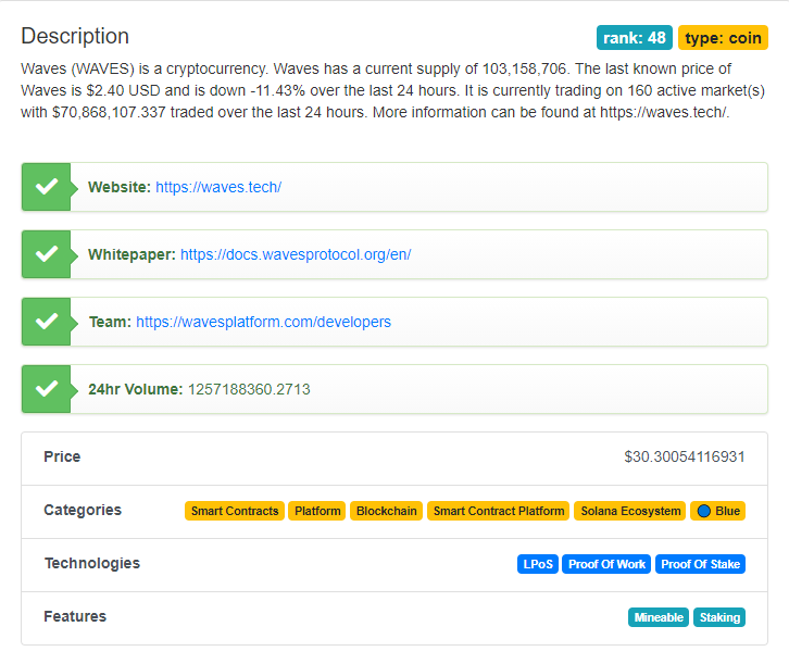 웨이브 코인은 102개의 프로젝트를 하고 있습니다.