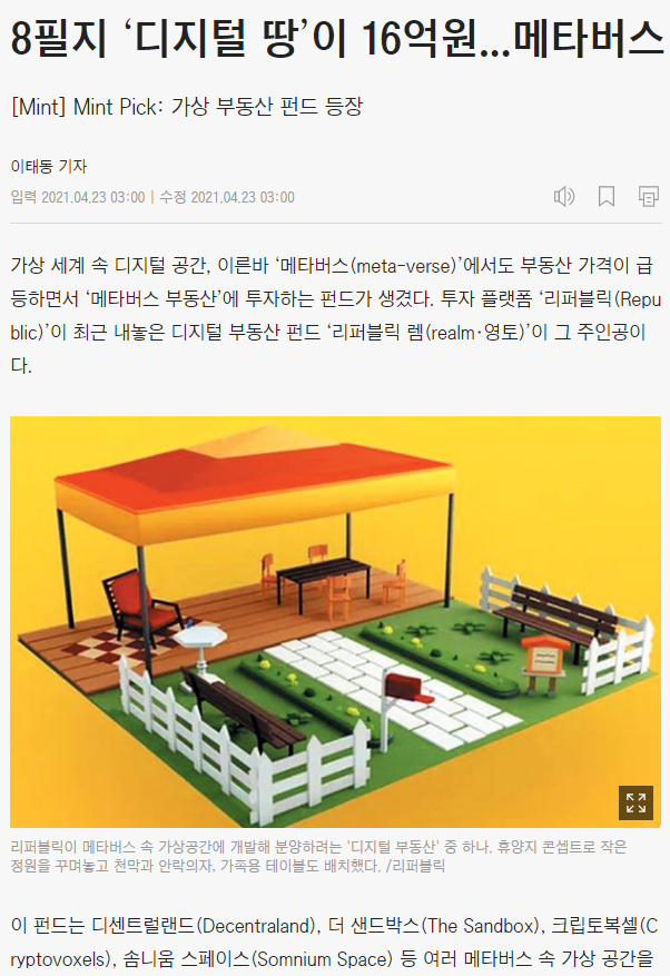 메타버스 가상세계 역시 부동산 열풍이네요.